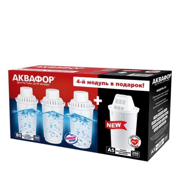 Картридж А5, помимо фильтрующей смеси, содержит минерал - перламутровый доломит, который сохраняет магний в очищенной воде. Это единственный минерал, который легко усваивается из воды. Он предотвращает заболевания сердца и сосудов, положительно влияет на настроение и сон. ВОЗ считает магний самым дефицитным минералом для населения Земли: получить норму магния с обычным рационом питания в городе сложно.
