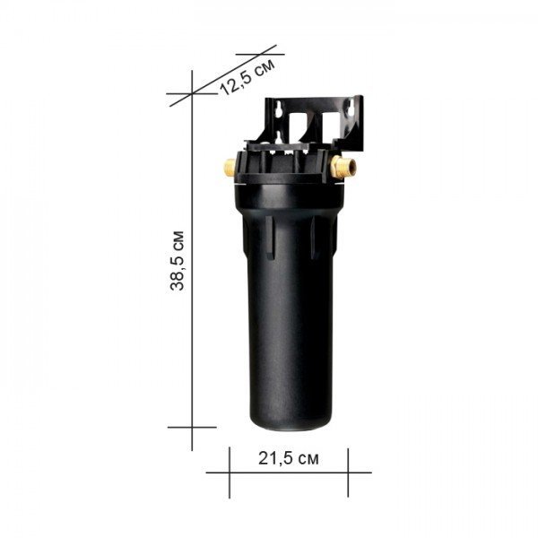 Высота, смОбратите внимание на габариты фильтра и измерьте, сколько свободного пространства в предполагаемом месте установки.38,5Ширина, смОбратите внимание на габариты фильтра, и измерьте, сколько свободного пространства в предполагаемом месте установки.21,5Глубина, смОбратите внимание на габариты фильтра, и измерьте, сколько свободного пространства в предполагаемом месте установки.12,5КомплектацияГотовый фильтр состоит из корпуса и картриджа для очистки воды. Если вы приобретаете только корпус, необходимо отдельно купить подходящий к нему картридж: это может быть картридж для механической очистки воды от ржавчины, картридж для глубокой очистки воды от хлора.только корпусМатериал корпусаПищевой пластик: Допущен к контакту с пищевыми продуктами. Нержавеющая сталь: Долговечный и безопасный корпус из нержавеющей пищевой стали.пищевой пластикДля горячей водыКартриджи и корпуса фильтров рассчитаны на определенную температуру воды. Данные технические характеристики важно учитывать, поскольку от этого зависит качество очистки и срок службы фильтра.даДля холодной водынет