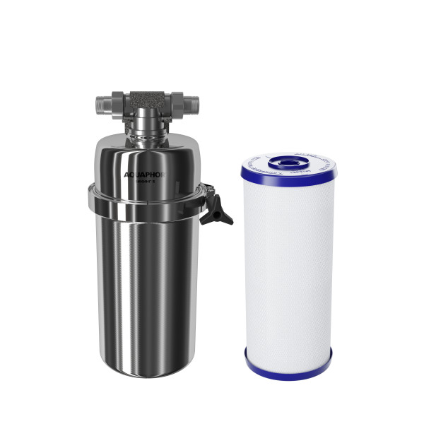 Не забывайте учитывать и срок службы фильтра: он указан в паспорте и определяет, когда модуль нужно заменить, даже если ресурс активной фильтрации в литрах еще есть.25000Вес, кг (нетто) изделия5,8Высота, смОбратите внимание на габариты фильтра и измерьте, сколько свободного пространства в предполагаемом месте установки.42,5Механическая фильтрацияЗадерживает ржавчину, ил, песок, как “сито”. Если в фильтре несколько картриджей - первый отсекает самые крупные частицы, а каждый последующий - более мелкие. Существуют картриджи, в которых есть только механическая очистка (полипропиленовые, не “впитывают” растворенные примеси). Они обычно стоят первыми по ходу воды, чтобы продлить жизнь угольным (сорбционным) картриджам, которые ещё и впитывают вредные примеси, как губка.даСорбцияСпособность “впитывать” из воды растворенные, “невидимые” вредные примеси, по принципу губки. Активированный уголь - основной сорбционный материал, который используется в картриджах фильтров для питьевой воды. Например, именно так из воды удаляется хлор.даФильтрует частицы крупнее, мкмЧем меньше цифра, тем более мелкие частицы способен задержать фильтр. Например, любой фильтр под мойку справится с ржавчиной, илом и песком, но не каждый - с бактериями (на это способен картридж с половолоконной мембраной и системы обратного осмоса). Если в фильтре несколько картриджей - первый отсекает самые крупные частицы, а каждый последующий - более мелкие. Цифра указана для картриджа самой тонкой очистки.1,0Фильтрующий модуль в комплектедаДавление в водопроводе не более, атмМаксимальное давление воды на входе в систему, при котором возможна стабильная работа фильтра.6,5Ширина, смОбратите внимание на габариты фильтра, и измерьте, сколько свободного пространства в предполагаемом месте установки.18,0Глубина, смОбратите внимание на габариты фильтра, и измерьте, сколько свободного пространства в предполагаемом месте установки.18,0Защита корпуса от гидроударовдаСкорость фильтрации, л/минСкорость подачи отфильтрованной воды из крана чистой воды на мойке. Например, при скорости фильтрации 2,5 литра/минуту стакан 200 мл. наполнится меньше, чем за 10 секунд.7,0КомплектацияГотовый фильтр состоит из корпуса и картриджа для очистки воды. Если вы приобретаете только корпус, необходимо отдельно купить подходящий к нему картридж: это может быть картридж для механической очистки воды от ржавчины, картридж для глубокой очистки воды от хлора.готовый фильтрВодаКартриджи и корпуса фильтров рассчитаны на определенную температуру воды. Данные технические характеристики важно учитывать, поскольку от этого зависит качество очистки и срок службы фильтра.холоднаяМатериал корпусаПищевой пластик: Допущен к контакту с пищевыми продуктами. Нержавеющая сталь: Долговечный и безопасный корпус из нержавеющей пищевой стали.нержавеющая стальОчисткаМеханическая очистка: Задерживает ржавчину, ил, песок, как “сито”. В корпусе предфильтра с механической очисткой установлен полипропиленовый модуль. Глубокая очистка: Подходит, чтобы купать детей в чистой воде. Делает прием душа и умывание более приятным. Фильтр глубокой очистки воды во всей квартире не только останавливает ржавчину, ил, песок, но и впитывает растворенные опасные примеси, как губка. Удаляет из воды хлор, хлорорганические вещества, 